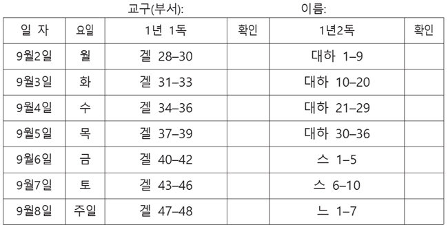 전 성도 성경 읽기표(2019-09-01)