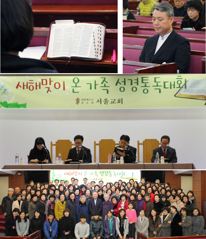 2015년을 맞아 새해맞이 온가족 성경통독대회를 1월 15일(목)~16일(금) 오전 9시30분부터 오후 5시까지 101호(웨스트민스터홀)에서 가졌다. 성경통독범위는 여호수아서부터 열왕기하까지, 그리고 마태복음이었다.