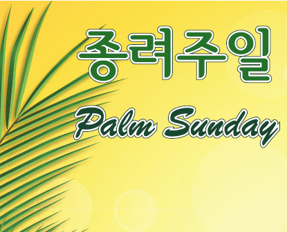 종려주일은 예수님께서 십자가에서의 고난을 앞두고 예루살렘에 입성하실 때, 군중들의 환영을 받은 사건(마 21:1-11, 막 11:1-10, 눅 19:28-40, 요 12:12-19)을 기념하는 날로서, 날짜는 해마다 다릅니다. 올해는 4월 9일이 종려주일이며, 이 날부터 7일간을 예수님의 고난을 기념하는 고난주간으로 지킵니다.