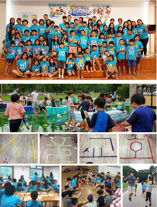 사실 유초등부 여름성경학교 일정은 정말 쉴 틈이 거의 없는 빠듯한 일정으로 이루어져 있었습니다. 성경공과를 28-29일 이틀 동안 거의 50분씩 4번 진행하고 코너학습으로 서울교회 퀴즈센터와 도미노로 서울교회를 만들어 보는 시간, 그 외에도 저녁 기도회, 조별 말씀읽기 시간, 물놀이 등등 거의 쉴 틈이 없는 일정이었습니다.