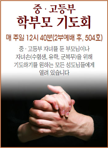 중 · 고등부 자녀를 둔 부모님이나 자녀손(수험생, 유학, 군복무)을 위해 기도하기를 원하는 모든 성도님들에게 열려 있습니다.