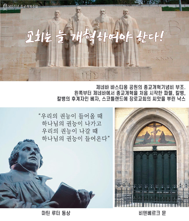루터는 비텐베르크 수도원 옥탑방에서 ‘사랑의 하나님’을 깨달아 ‘오직 믿음, 오직 은혜’를 주장했다. 1517년 10월 31일, 루터는 교황청을 향해 매우 날카롭게 95가지의 질문을 던졌다.