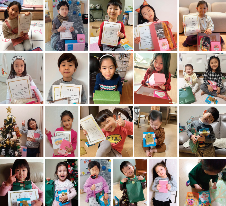 영·유아·유치부 어린이들에게 우리 교사들이 정성껏 준비하시어 보내드린 하반기와 분기 시상품, 연간 개근상과 정근상, 성탄 선물과 수료 선물, 졸업 선물이 각 가정에 잘 도착할 수 있도록 인도하신 하나님께 감사를 드립니다.