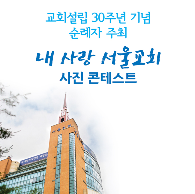 순례자는 교회설립 30주년을 맞아 전교인을 대상으로 "내 사랑 서울교회 사진 콘테스트"를 개최합니다.