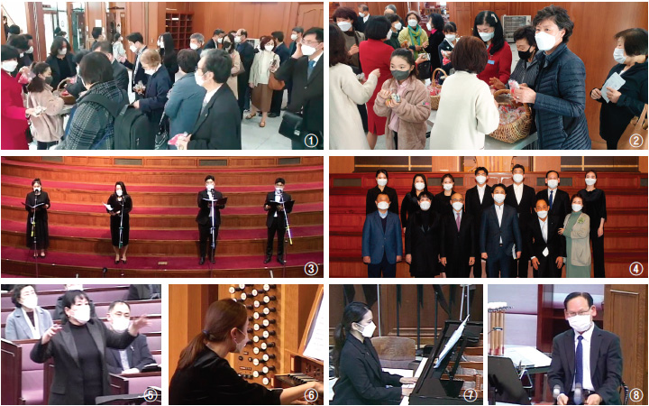 지난 주일, 부활절을 맞아 주일Ⅰ·Ⅱ·Ⅲ부 예배 시 떡과 달걀을 나누며 주님의 부활을 기뻐하였다. (사진 ①, ②) 또한 찬양예배 시 부활절 특별 찬양을 가브리엘 찬양대(대장: 오승민 집사) 지휘 백경화 권사, 오르간 이수정 성도, 피아노 정혜은 성도, 팀파니 윤주일 집사, 소프라노 솔리스트 박민정 성도, 김정인 성도, 테너 솔리스트 김성현 성도, 베이스 솔리스트 황성영 성도들이 영광의 찬양을 드렸다.