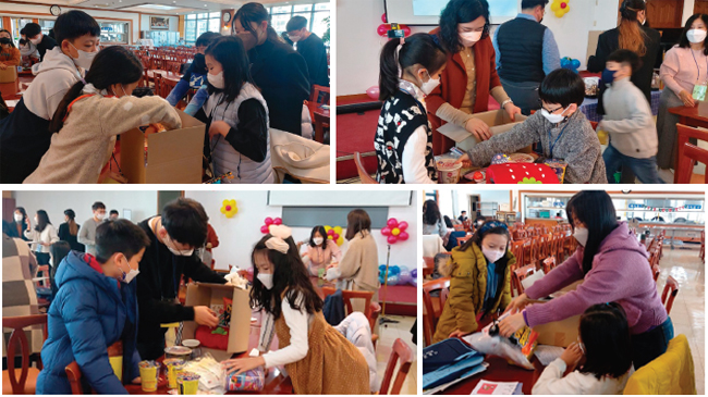 다음은 유·초등부 연합으로 진행된 강남지역 아동센터 후원과 청년1·2부의 강남구 독거노인 후원,