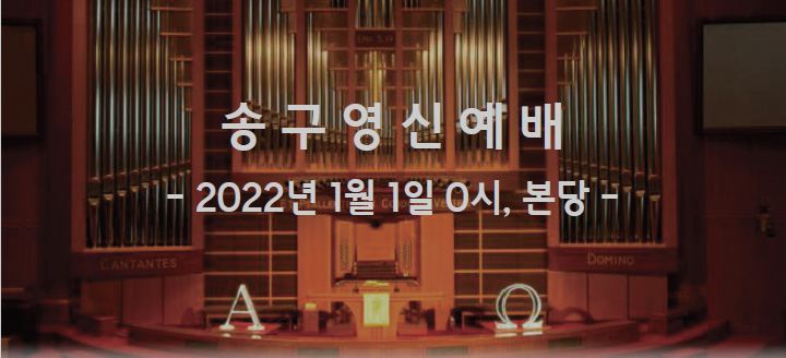 2022년 첫 시간을 하나님께 온전히 바치는 송구영신예배가 2022년 1월 1일(토) 0시, 본당에서 드려진다.