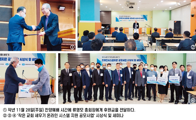 그 결실이 지난 6월 16일(목)에 맺어졌다. 총회는 우리 교회의 후원금을 공정하고 투명하게 집행하기 위해 '작은 교회 세우기 온라인 시스템 지원 사업'을 공모하여 18개 노회에서 추천 및 선정한 18개 교회에 250만 원씩 지원하는 시상식을 6월 16일(목) 대전제일교회에서 가졌다.