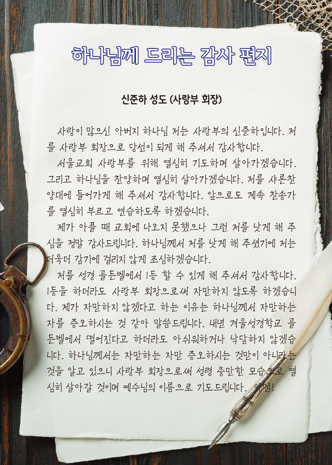 하나님께 드리는 감사 편지