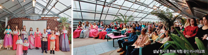 한국의 설날에 맞추어 매년하는 한국문화행사 겸 전도축제를 올해도 하였습니다. 한글학교 학생들이 한복을 입고 세배를 하고, 한복접기, 윷놀이, 제기차기 등 한국문화도 알렸습니다. 또한 방문한 사람들과 교제를 나누며 선교센터를 방문하도록 전도활동도 하였습니다. 이번 행사를 통하여도 많은 새로운 사람들을 만나게 되었으며, 새로 한국어를 배우려고 한글학교에 나오는 학생도 있고, 교회에 다시 나오는 성도도 있어 소기의 목적을 충분히 달성하였습니다.
