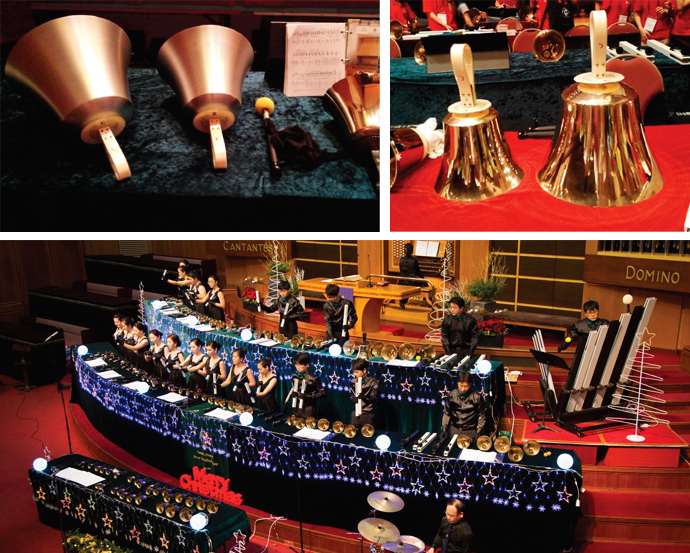 벨 한 개에 한 가지 음을 내는 핸드벨은 여러명의 연주자가 한 팀을 이루어서 연주를 하게 되는데 이를 핸드벨 콰이어(Handbell Choir)라고 부릅니다. 다양한 주법의 연주를 통해 단순히 종을 치는 것이 아니라 아름다운 음악을 연주하게 되며 사람들은 핸드벨 연주를 '천상의 하모니'라고 부르고 있습니다.