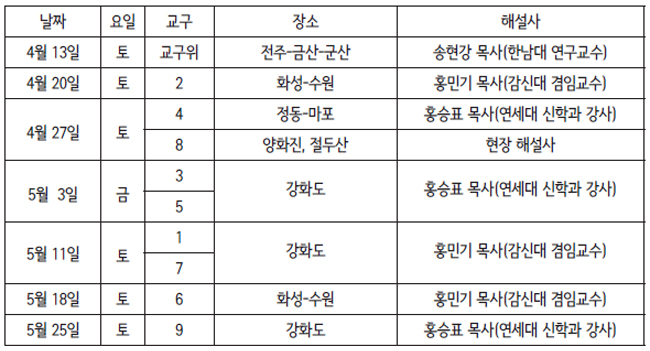 ㆍ교구별 국내 선교 유적지 순례 코스(일정)