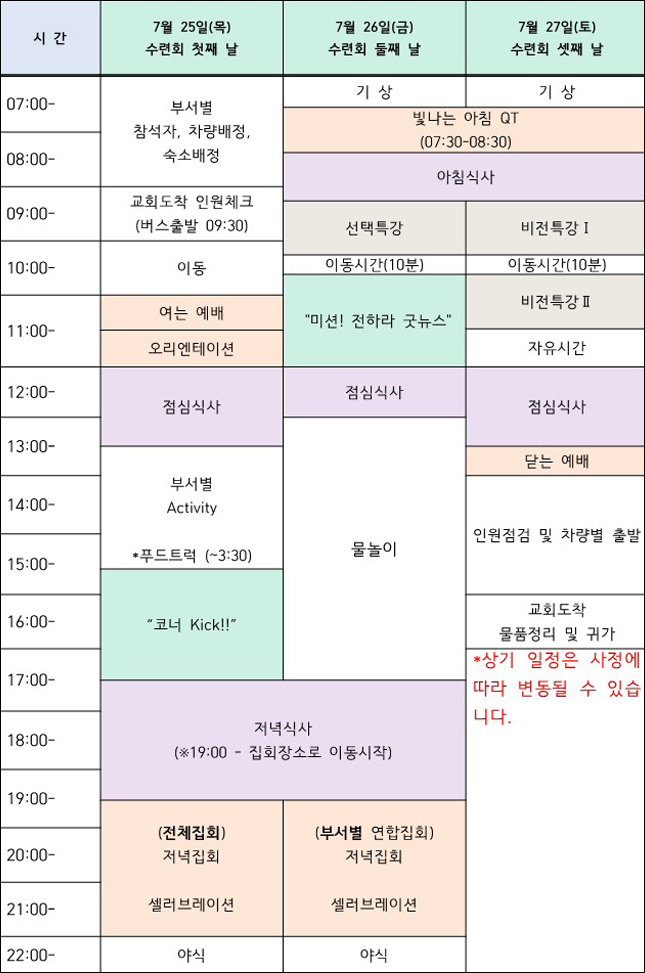 1) 찬양과 저녁집회, 기도회를 통한 한 단계 더 성장하는 신앙훈련