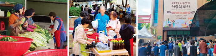 앞서 말씀드린 희망판매장터는 바자의 또 하나의 희망이 되었고, 사랑의 온도계의 온도는 많은 성도님들의 뜨거운 참여로 목표인 100도를 넘어선 120까지 올라갔습니다. 물품판매는 한 교구도 빠짐없이 한 품목 이상의 물품판매에 나섰으며 호산나대학도 동참하여 1층 실내와 주차장을 가득 메웠습니다. 명실상부 서울교회 바자의 명물이라 할 수 있는 침구류 판매는 베개 피 한 장 남음 없이 모두가 판매 되었습니다. 이웃 주민들도 웃고 즐거워하는 성도님들의 모습을 보시며 삼삼오오 바자에 찾아오시는 모습도 볼 수 있었습니다. 이러한 모든 것이 가능했던 것은 각 교구에서 자원한 229명의 봉사자들로 인하여 가능했으며 이 분들이야말로 이번 바자의 진정한 주인공이었습니다.