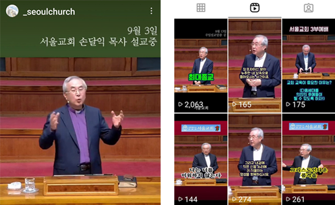 ▼ 서울교회 인스타그램과 2,000뷰를 넘긴 손달익 위임목사님의 설교 릴스 영상