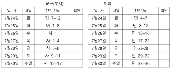 전교인 성경읽기표(2023-07-23)