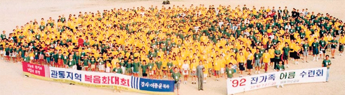 아직까지 해외여행도, 멋진 피서라는 개념이 전무했던 1992년… 저희 가족도 외할아버지, 외할머니 그리고 외삼촌 가족 등 총 10여명의 대가족이 서울과 대구에서 연합수련회에 참여하였습니다. 그렇게 가족 단위로 동참했던 분들이 저희 가족뿐만은 아니었던 걸로 기억됩니다. 수많은 인파가 종합운동장에서 몇 수십 대의 버스로 목적지를 향해 출발하던 모습은 흡사 이스라엘 민족 대이동이 이랬겠구나 하는 착각을 불러일으킬 정도로 굉장히 스펙타클한 광경이었습니다.