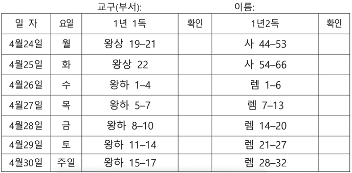 전교인 성경읽기표(2023-04-23)