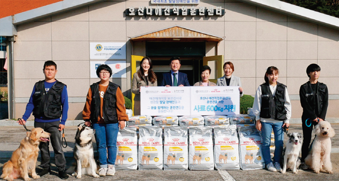 로얄캐닌은 호산나대학 호산나애견직업훈 련센터에서 생활 중인 훈련견들의 건강한 영양 관리를 도울 맞춤영양사료 600kg을 전달 했다.