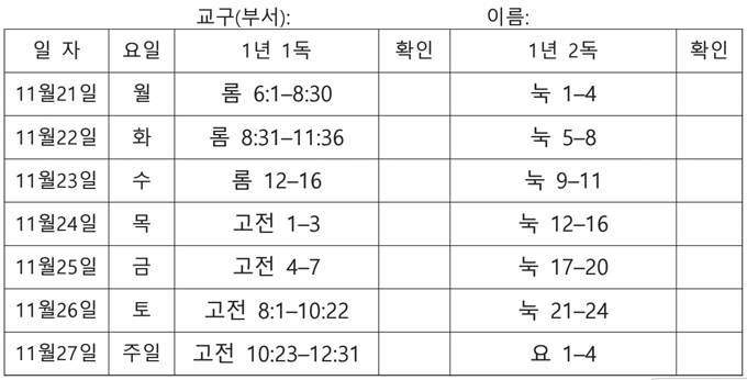 ㆍ2024 전교인 성경읽기표(2024-11-17)