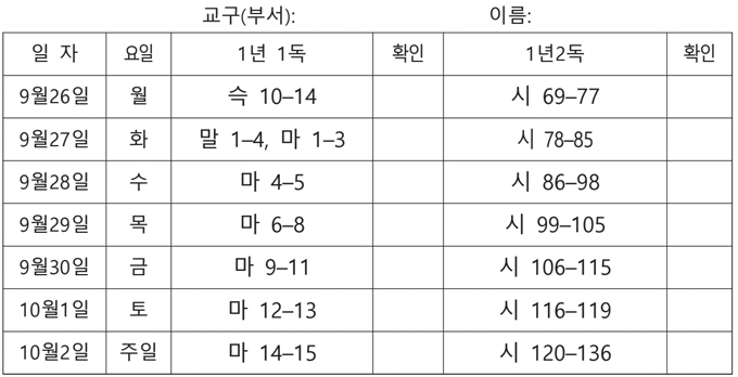 전교인 성경읽기표(2022-09-25)