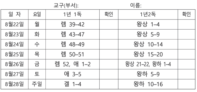 ㆍ2024 전교인 성경읽기표(2024-10-20)