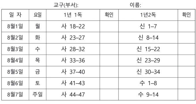 전교인 성경읽기표(2022-07-31)