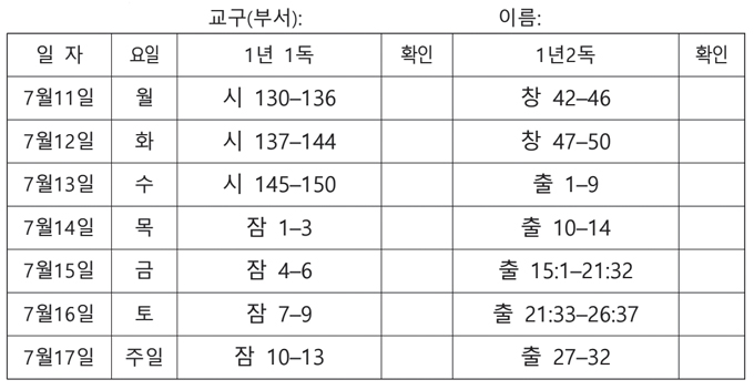 ㆍ2024 전교인 성경읽기표(2024-11-3)