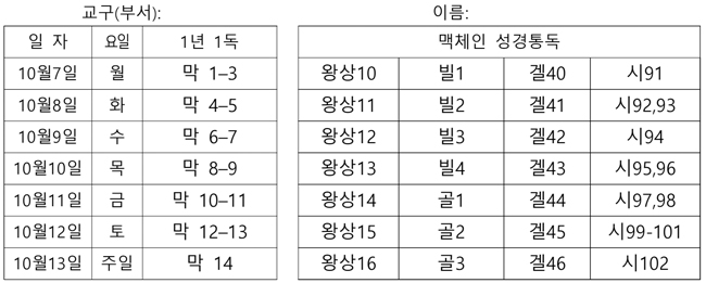 ㆍ2024 전교인 성경읽기표(2024-10-13)