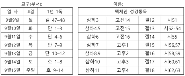 ㆍ2024 전교인 성경읽기표(2024-10-13)