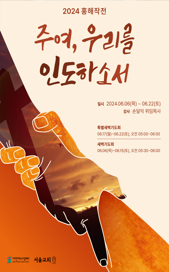 2024 홍해작전 준비가 시작되었습니다. 이 번 홍해작전을 섬길 위원들은 변화된 홍해작 전 홍보와 진행 방향을 위해 매 주일 회의와 기도로 준비 중입니다. 2024 홍해작전과 섬기시는 분들과 홍해작전 중 말씀을 전하시는 손 달익 위임목사님을 위해 성도님들의 뜨거운 기도 부탁드립니다.