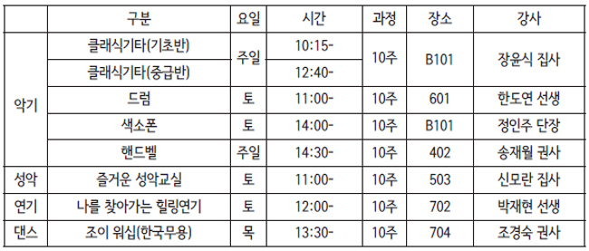 ※토요 통기타·베이스 기타반, 미술은 강사 사정으로 휴강합니다.