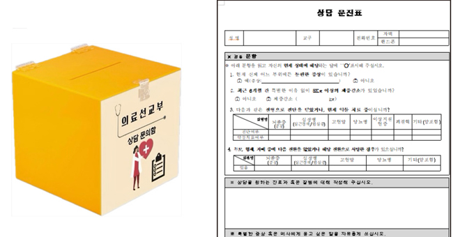 서울교회 의료선교회에서 성도님들의 건강상담을 시작합니다. 본당 2층 로비 필경대 위에 비치된 문진표를 작성하시어 노란색 상담 문의함에 넣어주시면, 전문 의료진이 개별적으로 연락을 드립니다.