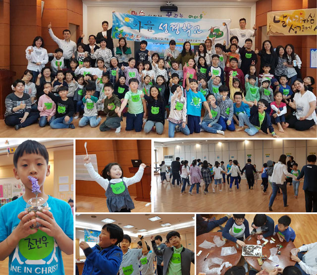 유 · 초등부 가을성경학교가 지난 주일(10월 22일)에 있었습니다. 올해 들어 가장 많은 어린이가 예배 참석했습니다. 코너 학습 3개를 준비했습니다. 퀴즈쇼는 만드는 것보다 퀴즈를 풀고 머리를 쓰는 것을 좋아하는 어린이들이 신청했어요. 코너학습 1인당 2개씩을 참여한 후 모두 모여서 활동 놀이를 했어요. 콩 나르기, 다윗과 골라앗, 우리 집에 왜 왔니?를 했어요. 지치지 않고 열정적으로 놀이를 했어요.